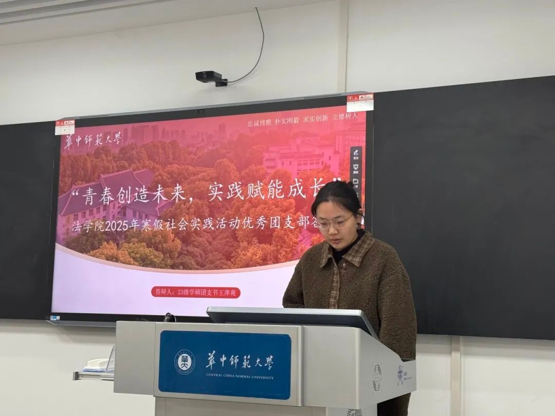 本次答辩中,来自12个团支部的团支书、班长就所在班级的组织动员、参与情况、成果总结等多方面进行了展示。2401班团支书霍雨佳从班委带头、多方开展以及及时总结等方面对本班实践成果进行深刻汇报;2303班团支书何厚霖介绍本班100%的活动完成率,保证所有人员能够在实践活动中齐头并进;2024级研究生法本二班团支书冷冰泠就班级结合线上线下双向模式进行前期组织、中期总结以及后期收尾工作,保证实时了解班级活动开展状况,制定班级短期规划;2024级学硕班团支书于孟靖从“体量大、种类多、成果好”三方面介绍所在团支部寒假实践成果,并介绍未来班级实践活动开展方向。