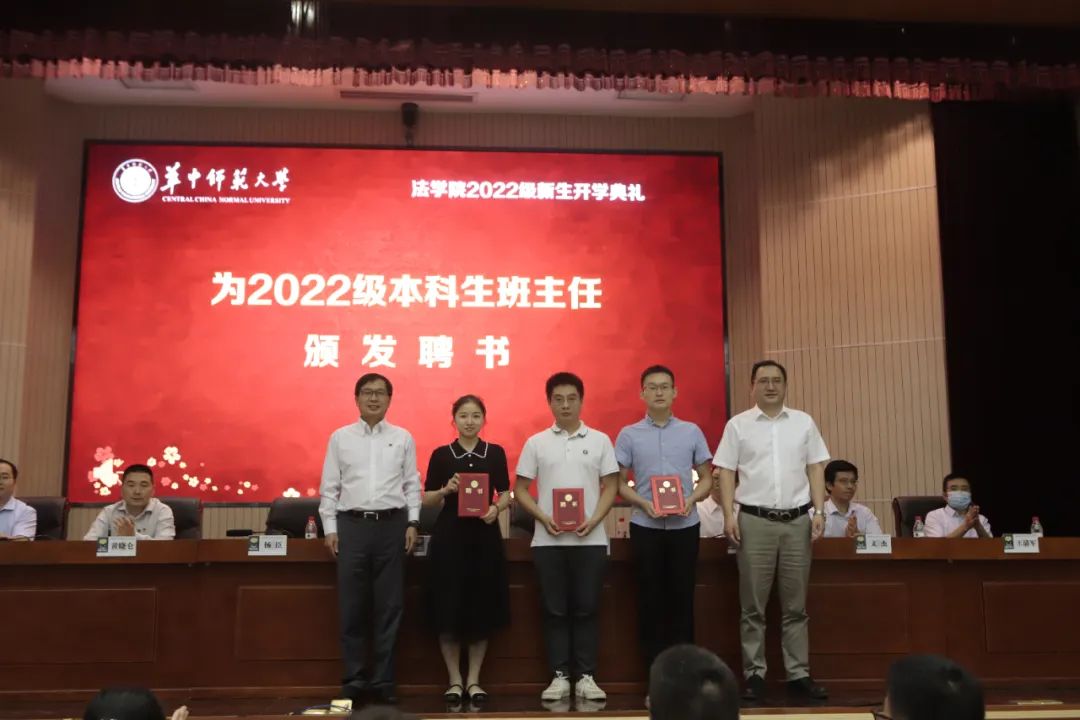 副校长任友洲和院长丁文共同为2022级本科生班主任孙思雨、聂圣和周林颁发聘书,勉励他们勤恳付出。