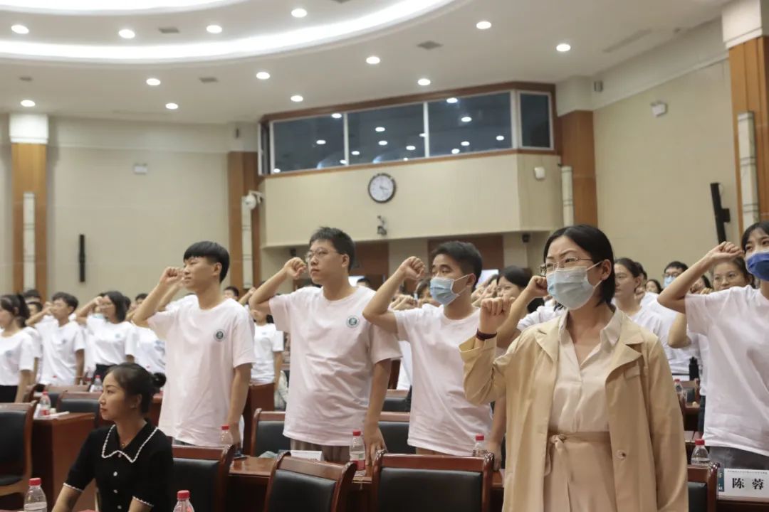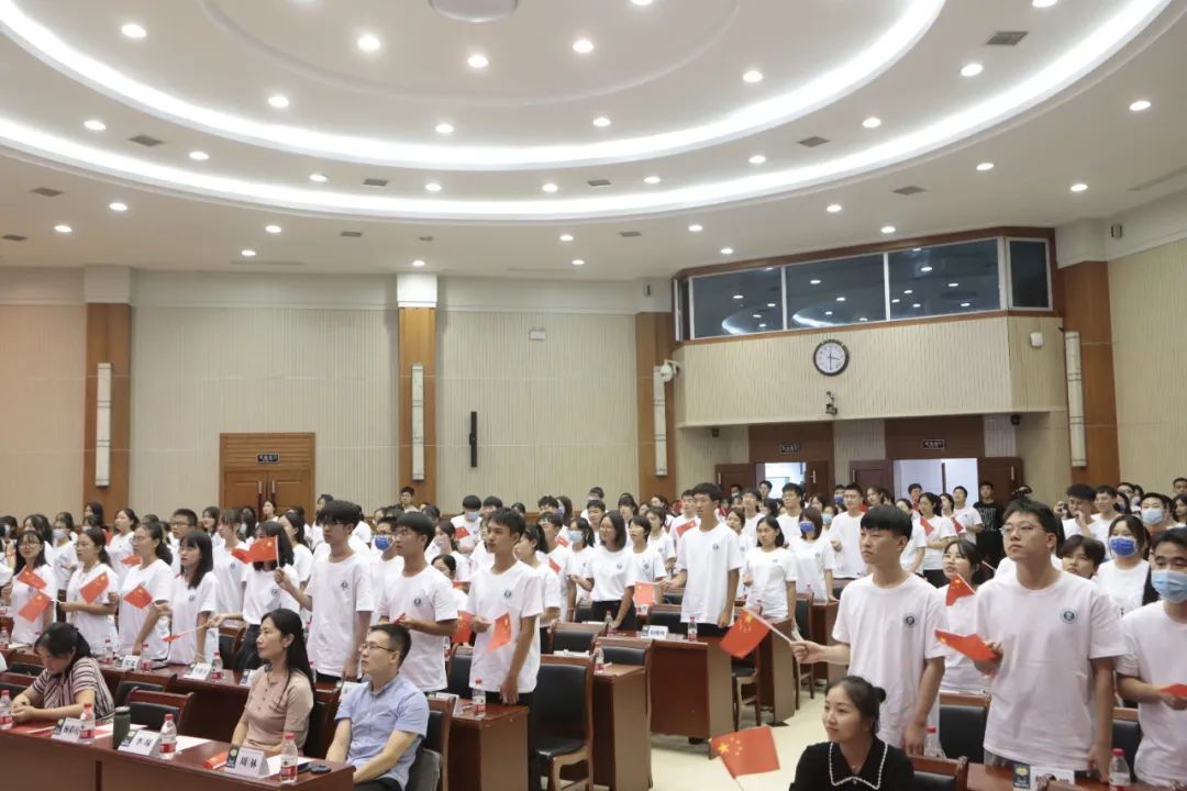 师生代表发言后,全体新生高举右拳,庄严宣誓。典礼最后,新生挥舞国旗,一同合唱歌曲《少年》。不论是全体宣誓,亦或一同合唱,字字切切传达着少年昂扬向上,报效祖国的激情。就如歌中所唱:“这个世纪少年,使命永远放心间”,征途漫漫,唯有奋斗。愿我们华师新人在桂子山上逐梦前行,书写精彩的人生篇章,用奋斗青春为学校120周年校庆献礼,以优异成绩迎接党的二十大胜利召开!