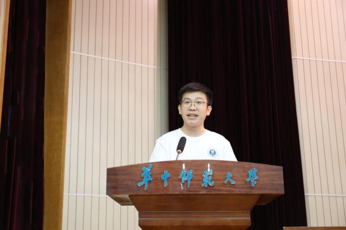 在校生代表、2020级硕士研究生黄祥瑞用自己在华师星空(中国)的七年学习工作经历,向学弟学妹们分享了相关经验,鼓励学弟学妹不仅要夯实课本知识以提升实务能力,更要学习隐藏在法条深处的法学精神,做用知识与理性守护公平与正义的华师法律人。