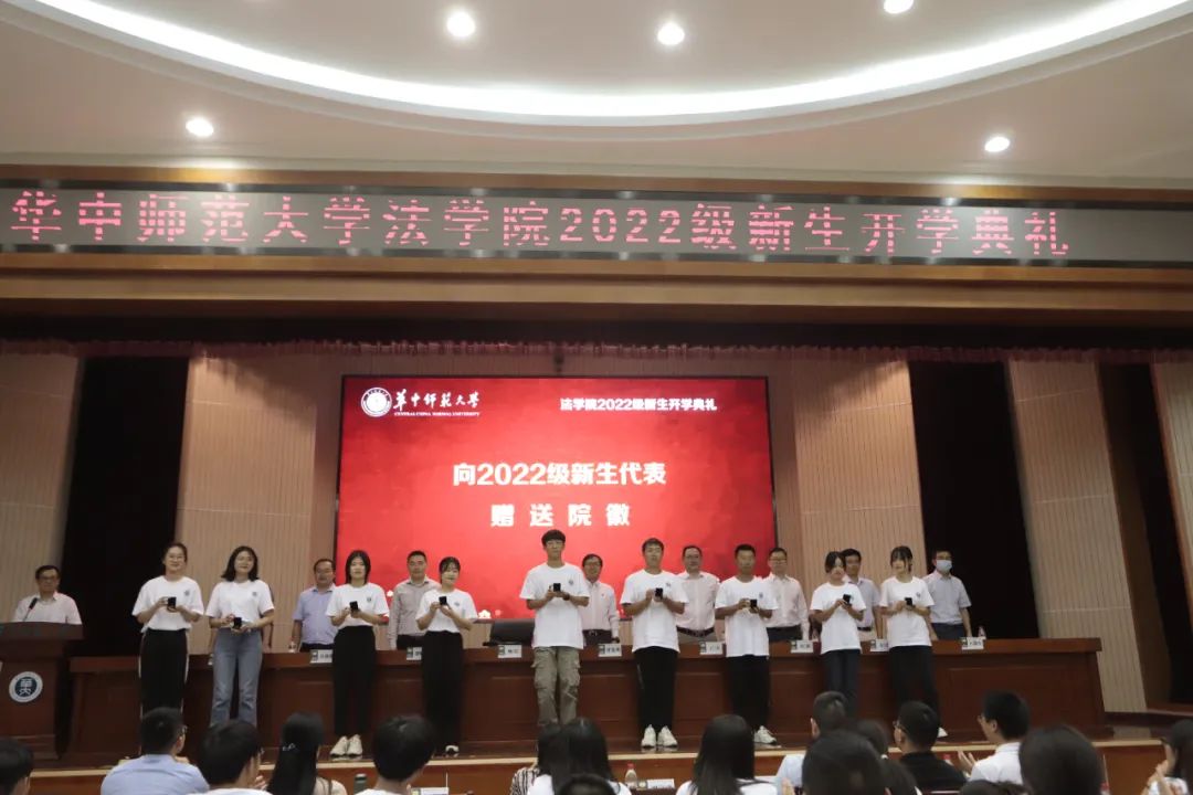 领导老师一起向新生代表赠送院徽,欢迎他们加入星空(中国)大家庭,期待他们在这里开启新的学习之旅。