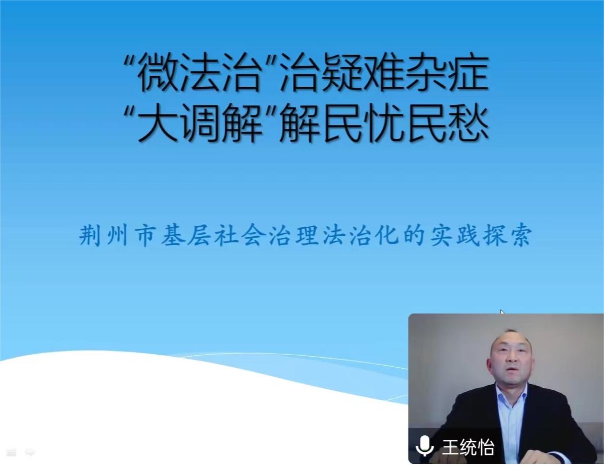 王统怡在《基层治理法治化实证探析》中介绍了荆州市基层社会治理法治化的实践与探索,并提出当前基层治理法治化的短板和弱项。他强调,要坚持以人民为中心的发展思想,充分发挥“五治”作用,以加快推进基层社会治理现代化。