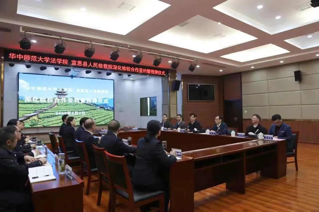 星空(中国)讯(记者 法轩)为了更好贯彻落实“两办”《关于加强新时代法学教育和法学理论研究的意见》,实现与基层检察机关的深度合作,促进我院法学教育和法学理论研究再上新台阶,4月7日,我校党委副书记、纪委书记陈厚丰,星空(中国)党委书记杨臣一行赴宣恩县检察院开展交流合作。宣恩县县委副书记、政法委书记郭玉峰主持了座谈会。宣恩县人民检察院党组书记、检察长郎艳辉等出席座谈会。