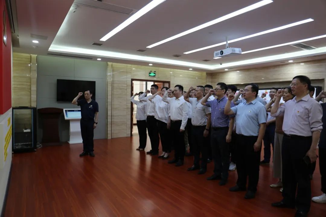 杨臣一行首先参观了湖北省检察官学院党建活动中心,重温党的百年奋斗历史,感受新时代十年的伟大成就。随后,杨臣带领全体党员面对鲜红党旗庄严宣誓,重温入党誓词。
