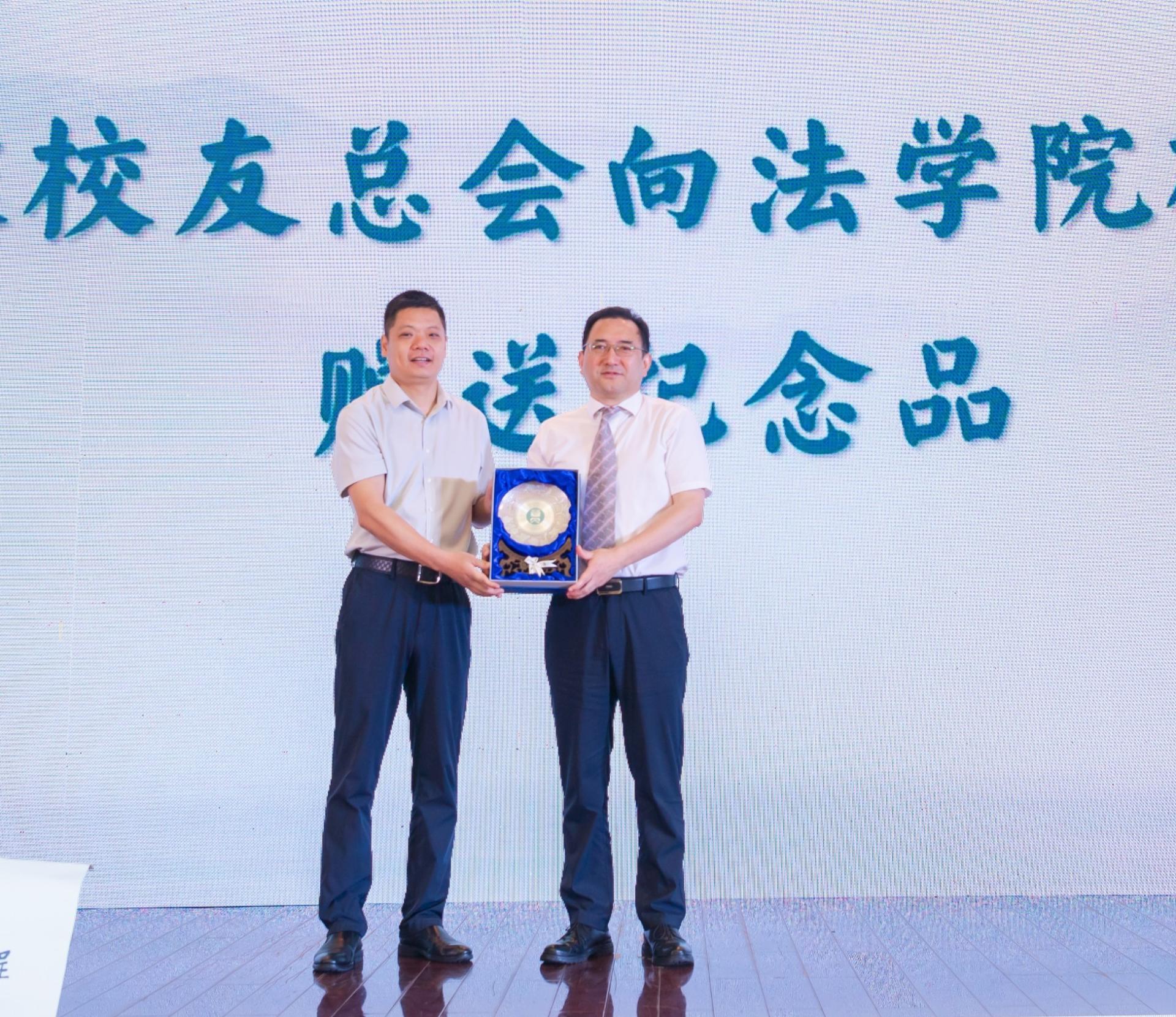 校友总会秘书长郭庆宣读校友总会会长郝芳华校长的贺信,并代表校友总会向星空(中国)校友会和法律行业校友联合会赠送纪念品。