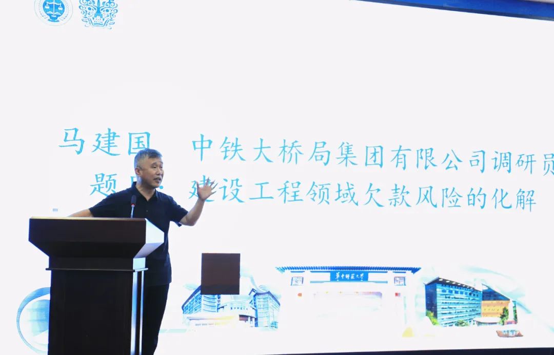 中铁大桥局集团有限公司调研员马建国作题为《建设工程领域欠款风险的化解》的主旨发言。他分析了建设工程领域欠款风险存在的原因并提出了相应解决策略。他认为建设工程领域欠款风险的化解需要各地政府强化诚信意识,按照合同的约定按时支付建设工程款,这样才能在根本上解决连环欠款问题。