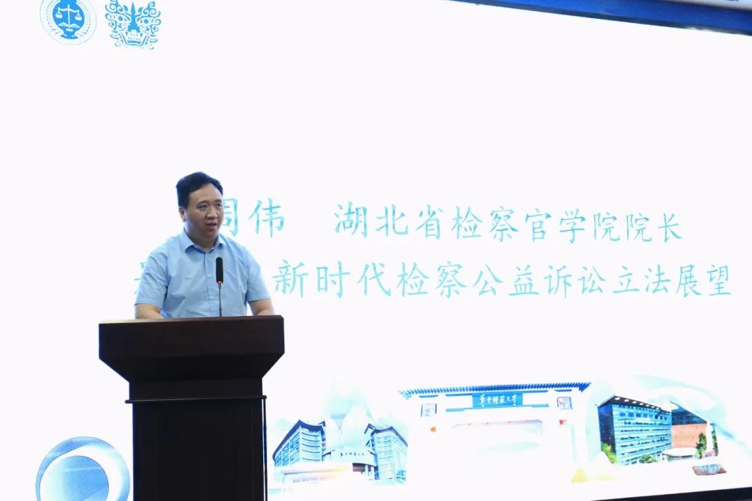 湖北省检察官学院院长周伟作题为《新时代检察公益诉讼立法展望》的主旨发言。他论证了检察公益诉讼专门立法的必要性和可行性,认为立法原则应体现特殊规律,强化履职保障,突出司法属性,完善配套机制。他还对案件范围、诉前程序和起诉期限等立法重点进行了阐释。