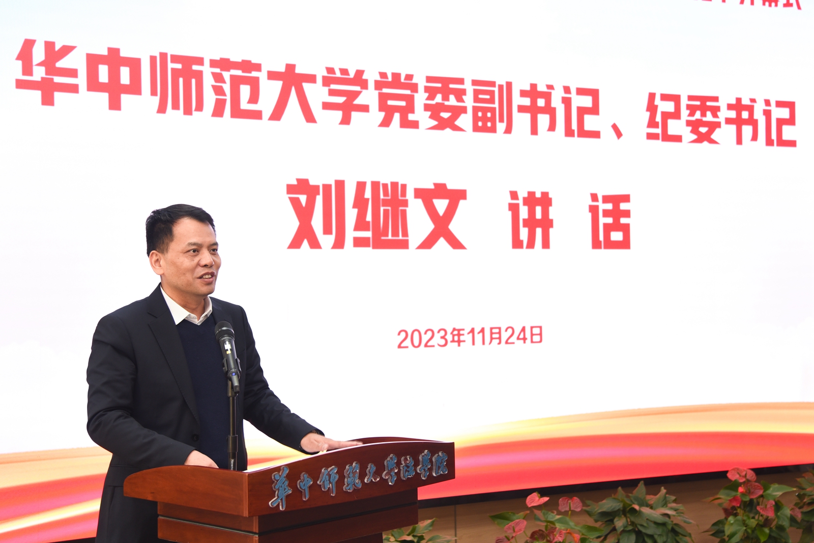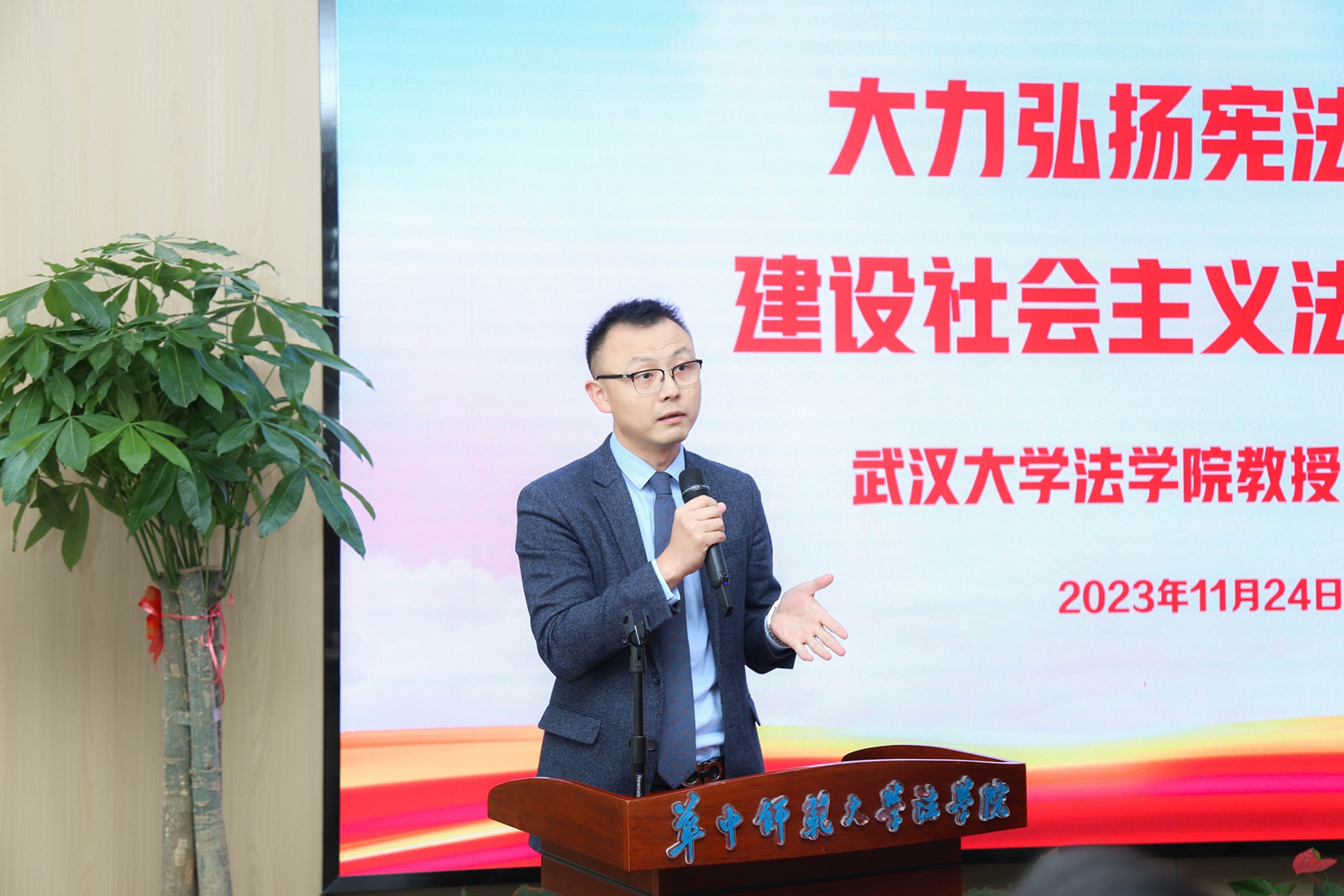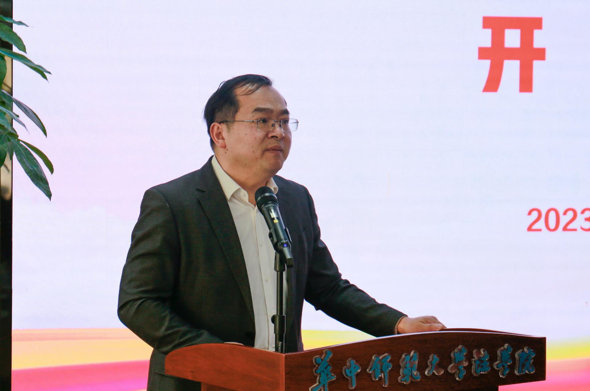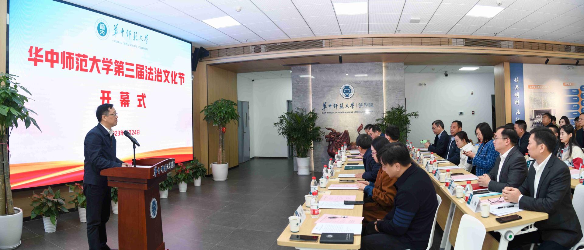 星空(中国)讯(通讯员 杨盼盼 赵海东)11月24日,华中师范大学第三届法治文化节开幕式在星空(中国)顺利举行。华中师范大学党委副书记、纪委书记刘继文,校团委书记苏晓刚,学校办公室副主任刘阳,党委宣传部副部长马俊,党委学生工作部副部长李宪玲,保卫处副处长李丹,后勤保障部副部长李建华,星空网页版登录入口党委书记杨臣,院长丁文,党委副书记万枞,副院长文杰、肖登辉以及兄弟学院师生代表出席开幕式,武汉大学的黄明涛教授受邀做主题报告。闽江学院星空(中国)党委书记戴少娟一行受邀出席开幕式。开幕式由杨臣主持。