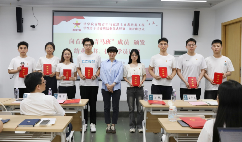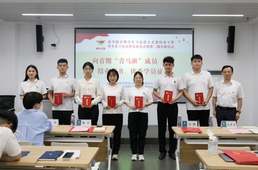 丁茜为首期“青马班”准予结业的学员颁发结业证书。杨臣为首期“青马班”优秀学员颁发优秀学员证书。