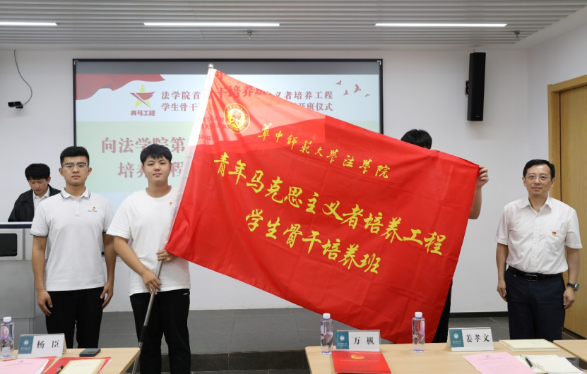 杨臣为第二期“青马班”授旗。“青马班”班旗从首期“青马班”班长尹训璞手中传递到第二期“青马班”班长陈志超手中。