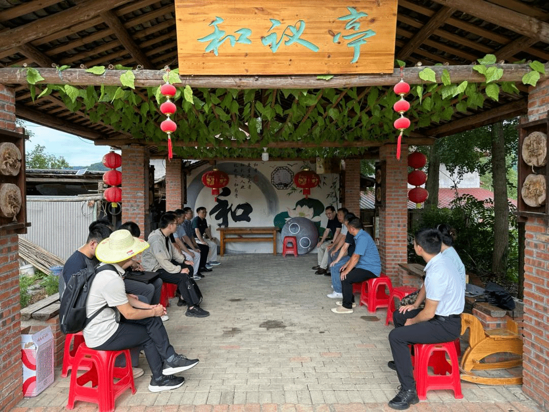 随后,杨臣、丁文、宋怀宇一行赴该村“和议亭”,与村民张国强就不同时期的基层治理方式和特点进行讨论。张国强曾任湖北省、宜昌市、兴山县人大代表,在和平村任村干部近40年,获得湖北省劳动模范等荣誉。