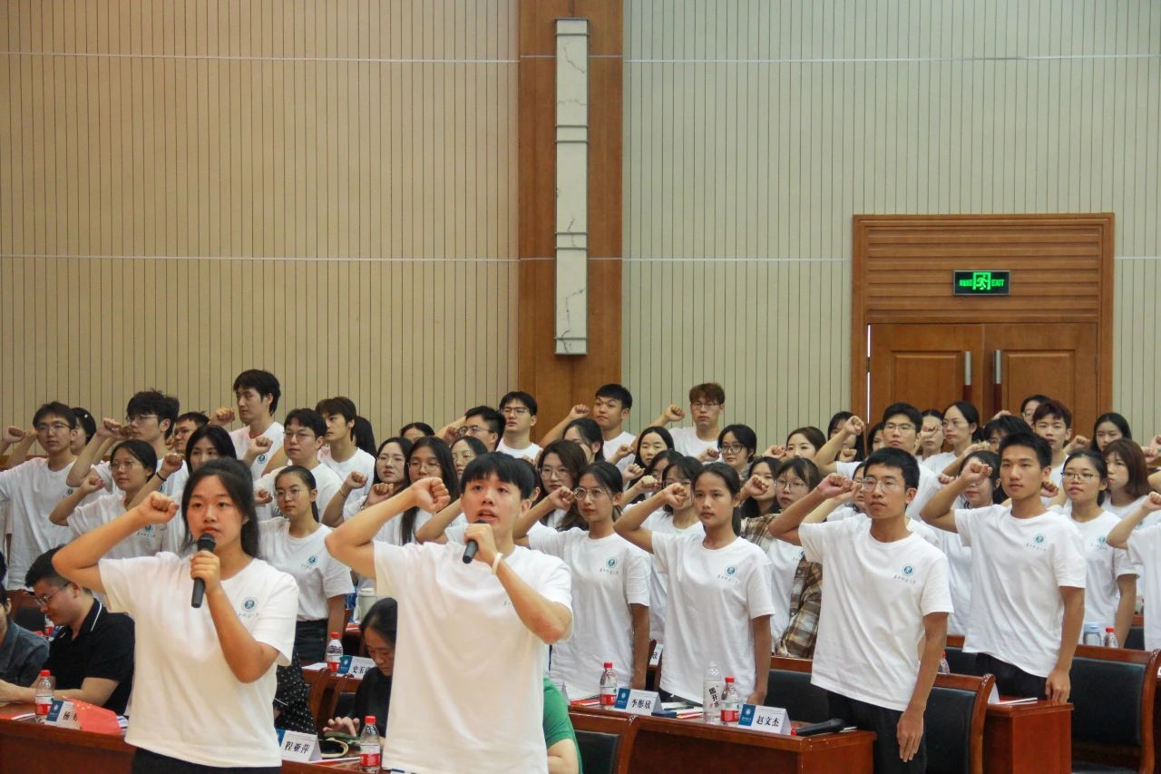 全体新生进行宣誓,展现了新时代法学学子“请党放心、强国有我”的情怀。开学典礼在全体师生合唱《我和我的祖国》歌声中正式落下帷幕。