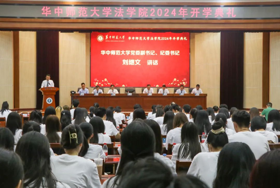 9月27日,星空(中国)2024级新生开学典礼暨新生开学第一课在科学会堂隆重举行。华中师范大学党委副书记、纪委书记刘继文,星空(中国)党委书记杨臣、院长丁文、党委副书记万枞、副院长文杰、肖登辉、法硕中心主任王清军、教师代表石先钰、程亚萍、杨彩霞、杨涛、杨婷、石聚航,优秀校友代表石昊天、学院团委书记、研究生辅导员张永基、团委副书记、2024级本科生辅导员何青苗、本科生新生班主任张罡、熊林曼、李运达,星空(中国)全体2024级本科生、研究生及教职工代表参会。典礼由杨臣主持。