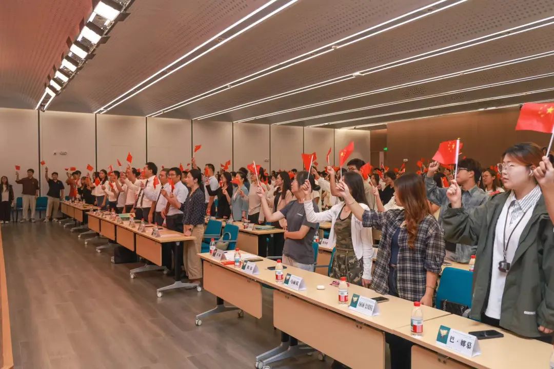 随后,全体新生起立,在领誓人杨梓彤、潘浴榕的带领下庄严宣誓,铿锵誓言中表达出华师法学学子“请党放心、强国有我”的使命担当。为表达对伟大祖国的热爱之情,谭芸曦、王昱、廖可涵、杨郅畅四位新生代表带领全体师生合唱《我和我的祖国》,开学典礼在合唱中结束。