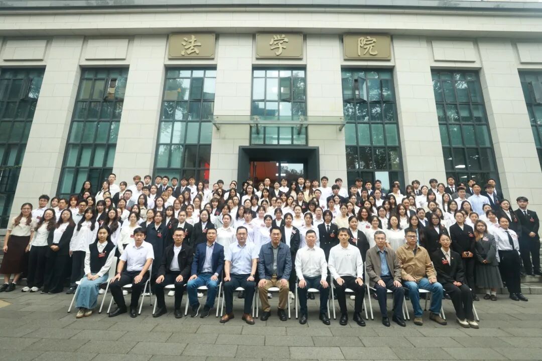 在合影环节,院长丁文、副院长文杰、周林,院长助理、法硕中心主任王清军同代表们一道合影。