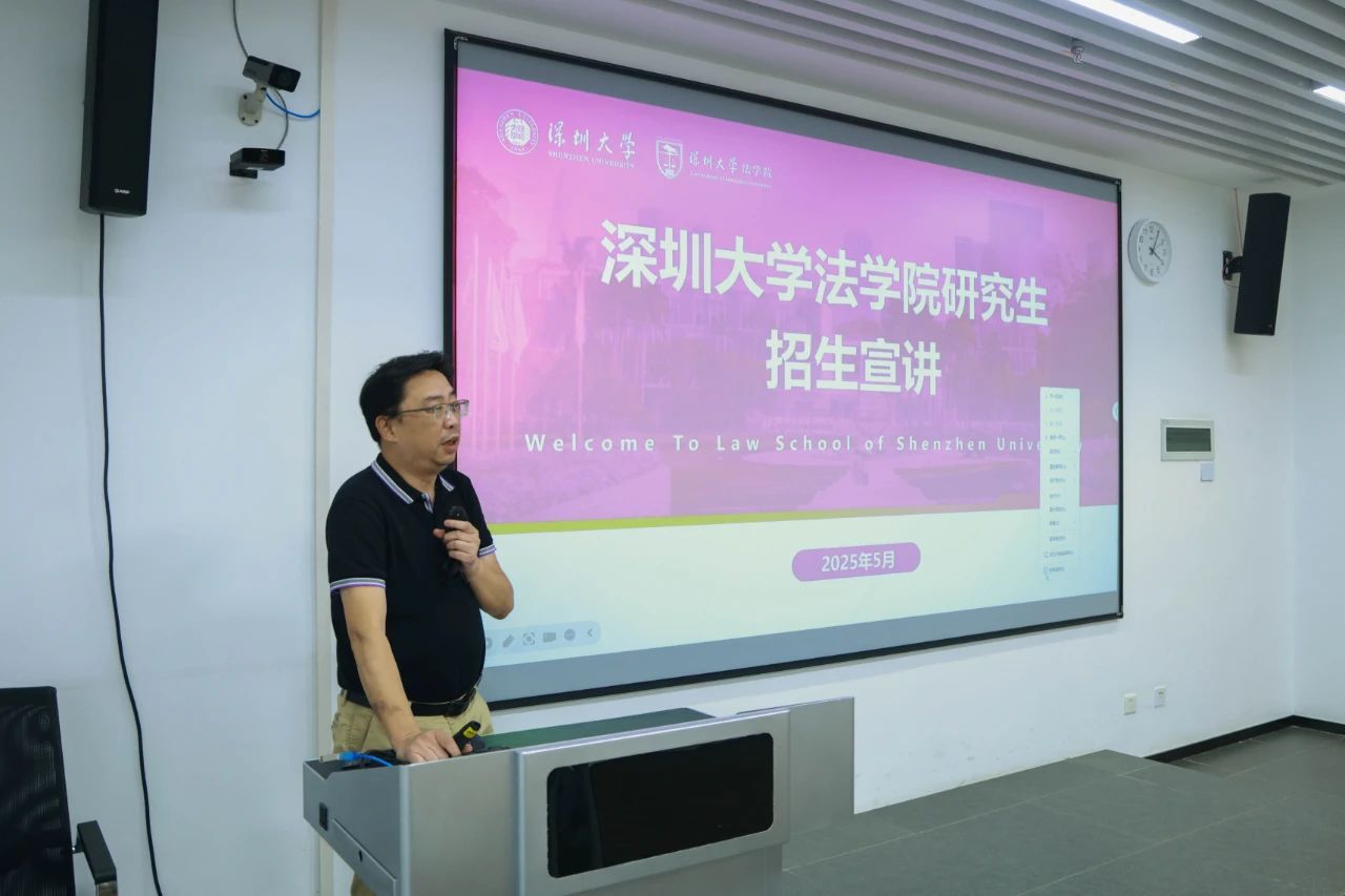 深圳大学粤港澳大湾区涉外律师学院副院长王茂祺从学院简介、发展历程、师资力量、培养模式、办学保障、社会影响、校园生活以及招生类别等八个方面进行招生宣讲。
